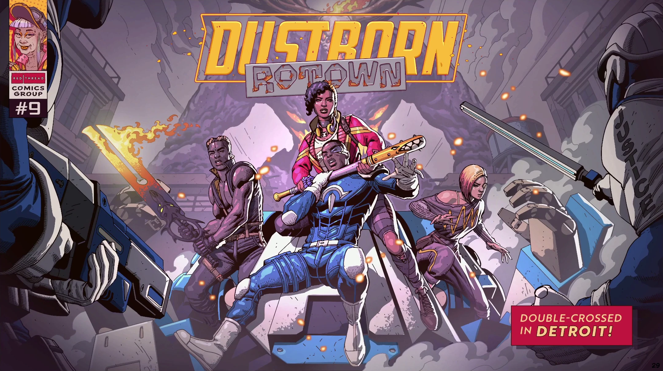 On October 24, the crew goes to Rotown (Detroit, Michigan) to find Theo's contact, who could not make it to the bar last time because of all the Justice officers there. Most of the crew stays near the bus while Ziggy and Eli stand guard outside the building for the meeting, leaving Pax and Theo to talk to the contact. The contact, Desmond, asks the crew to take the Anomal Nainai with them, but Pax and Theo notice holes in his story. Sure enough, Desmond sells them out to Justice, resulting in a fight against several officers. Walker tries to fight the party in a mech and nearly captures Pax, but Ziggy uses her speed to kick him when he exposes his cockpit, allowing the team to capture Walker instead. The remaining Justice officers refuse to stand down even with Walker taken hostage, so Pax and Eli summon a gigantic Bituman, causing two tiltrotors to crash and create an opening in a nearby wall. Just when the getaway truck is within sight, Kim stabs Pax and nearly kills her, only for Caretaker to pull Pax to safety. However, Caretaker is unable to escape from the train tracks before getting run over and Pax is still injured. The rest of the crew learns of Pax's pregnancy and worry that the injury could kill the baby too, especially when Sol's Vocal fails to heal Pax.